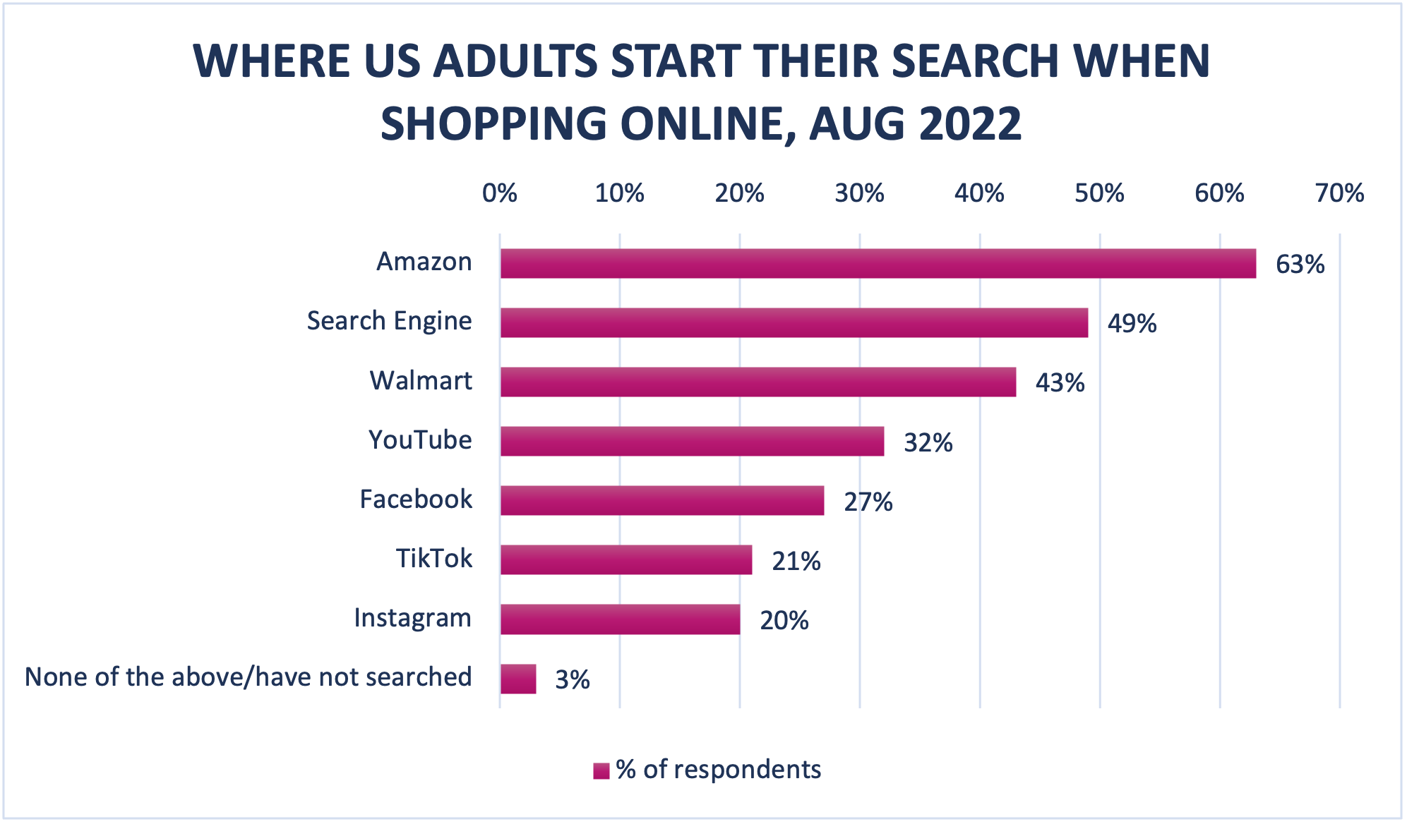 According to a study conducted with eMarketer, 61% of US consumers begin their product hunt on Amazon.