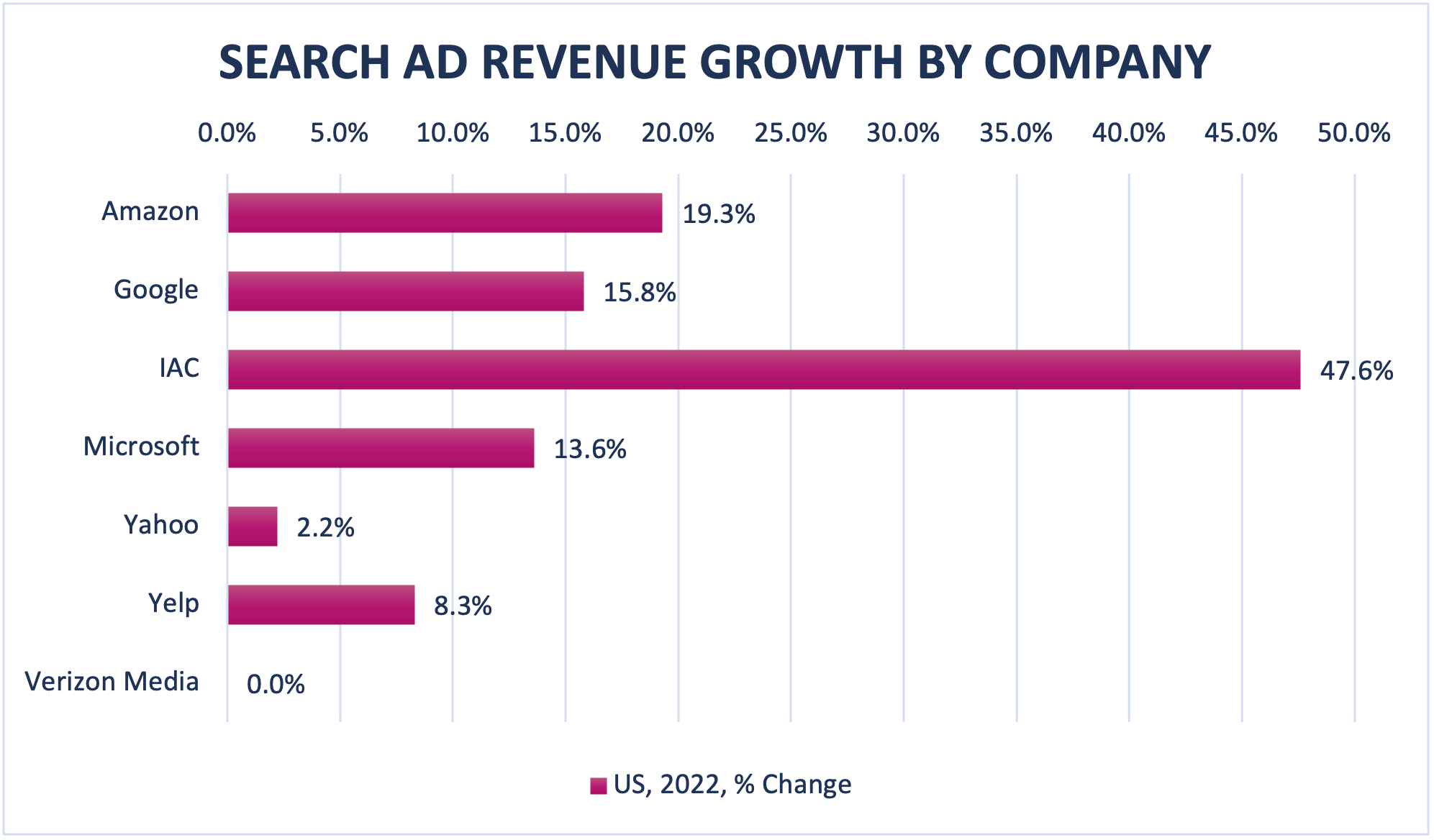 Amazon is capturing more Search ad revenue due to shoppers sometimes solely doing their shopping on the platform. Google remained a leader in Search Ad Revenue in 2022 with $57.22 Billion versus $20.75 Billion on Amazon. But Amazon had a 3.5% growth over the search giant.