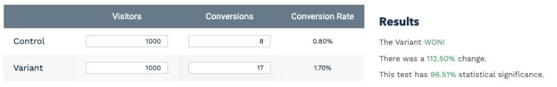 An ideal test length is 2 to 8 weeks. If a test still isn’t reaching statistical significance after 8 weeks, we recommend concluding the test and considering making a more drastic change or moving the test to an area of your site with higher traffic or a higher conversion rate.