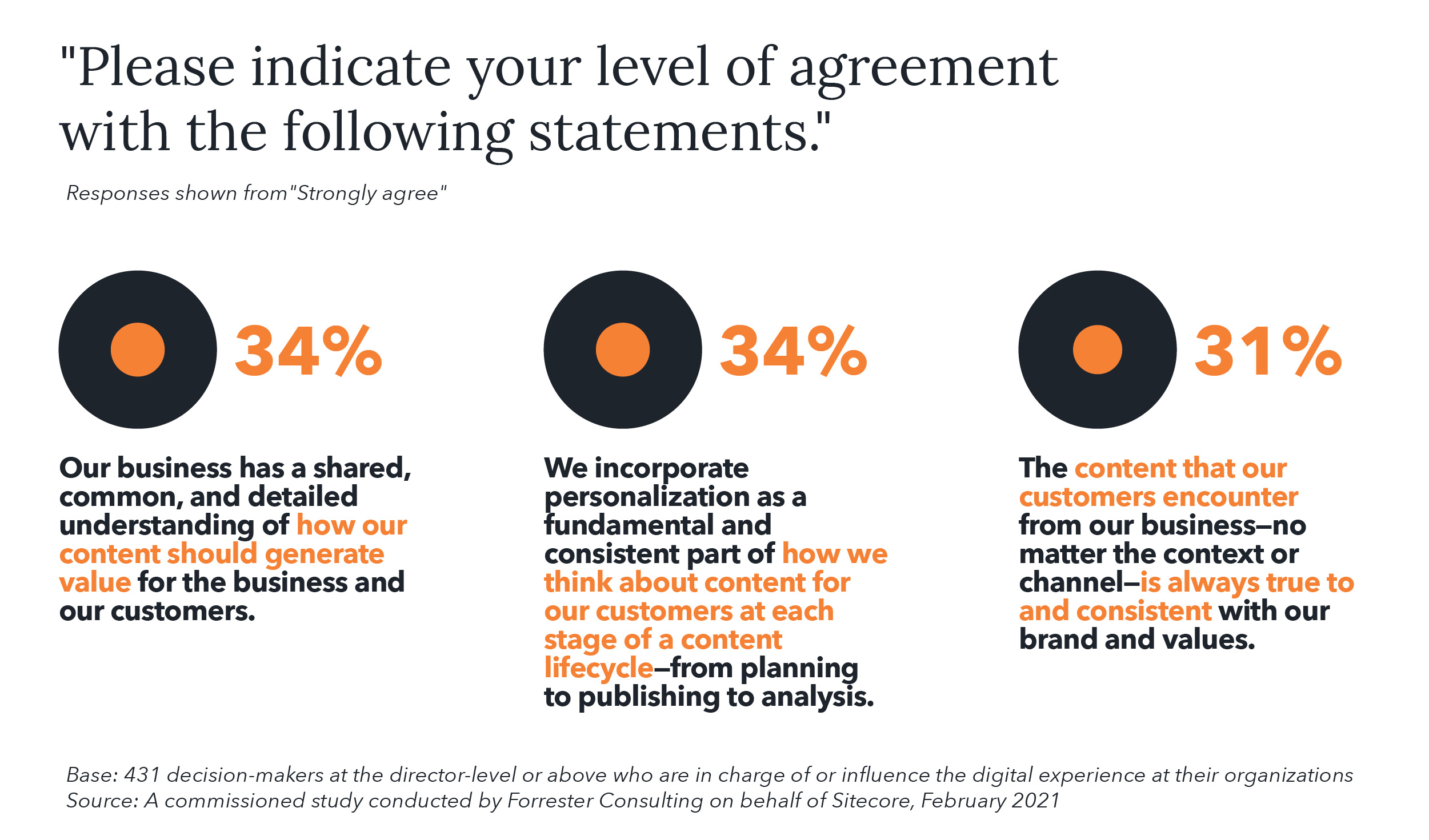 The Forrester-Sitecore report, derived from surveying 431 marketing leaders who are organizational digital marketing decision makers, reveals that: