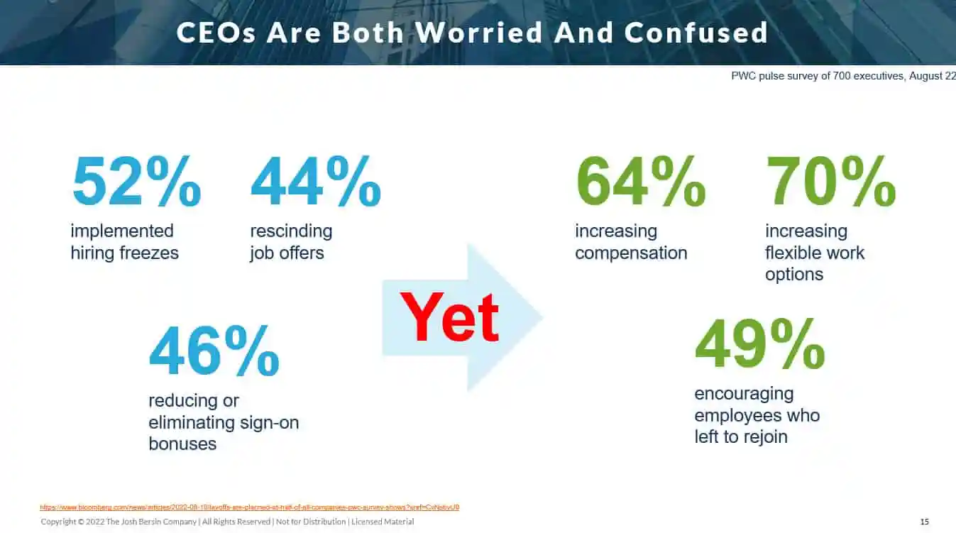 Indeed, a recent PWC survey of CEOs reveals the seemingly contradictory forces at play: