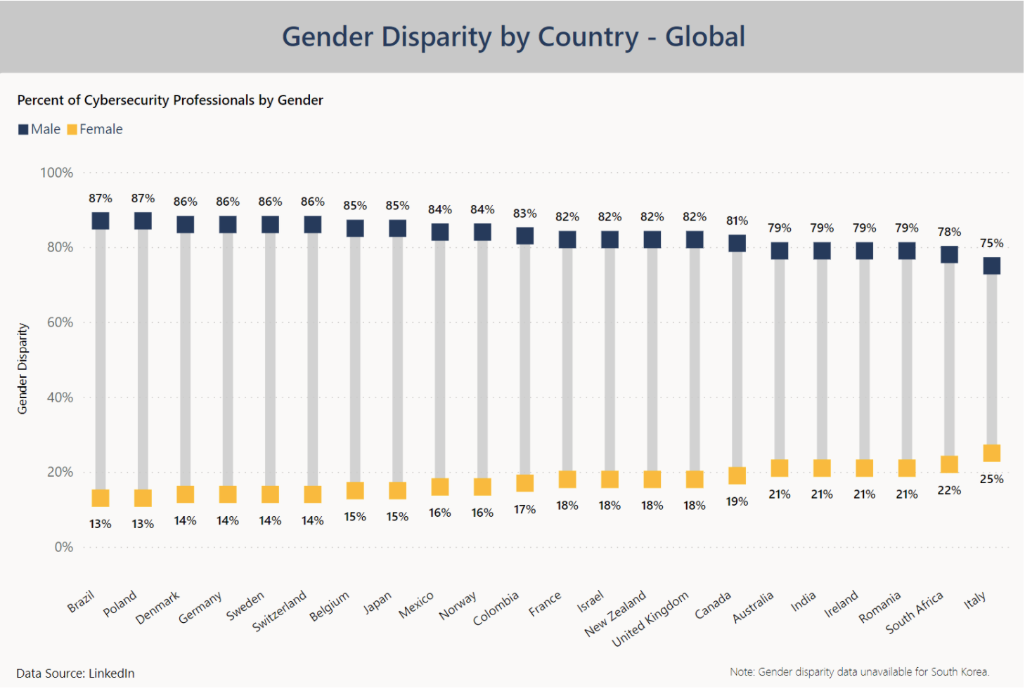 Bolstering your D&I strategy, both internally and externally, is crucial for closing the cybersecurity workforce gap. A 2021 report from ISC2 surveyed cybersecurity professionals across North America and the U.K. Only 24% of survey participants were female, and 28% were non-Caucasian.