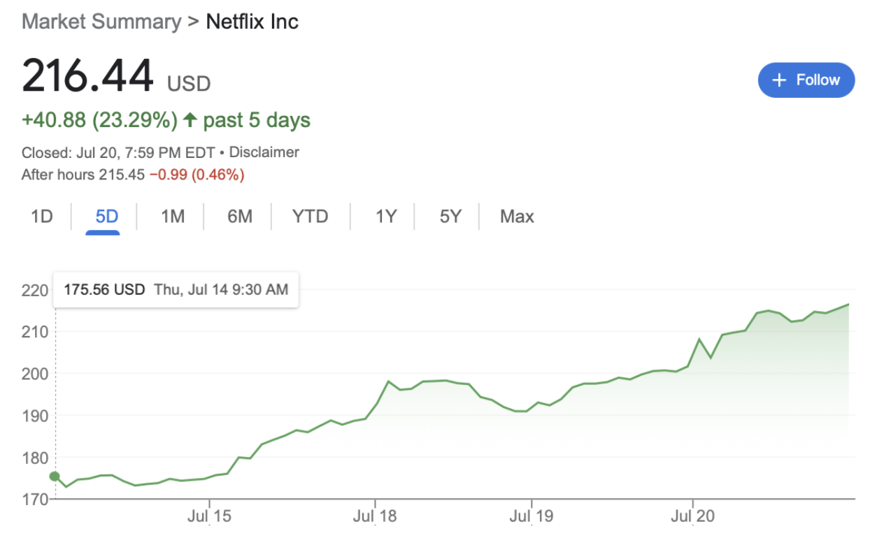 But months later, after its second-quarter announcement July 19, Netflix enjoyed a surge in its stock price – to be sure, nowhere near its 2021 peak, but a noticeable uptick.