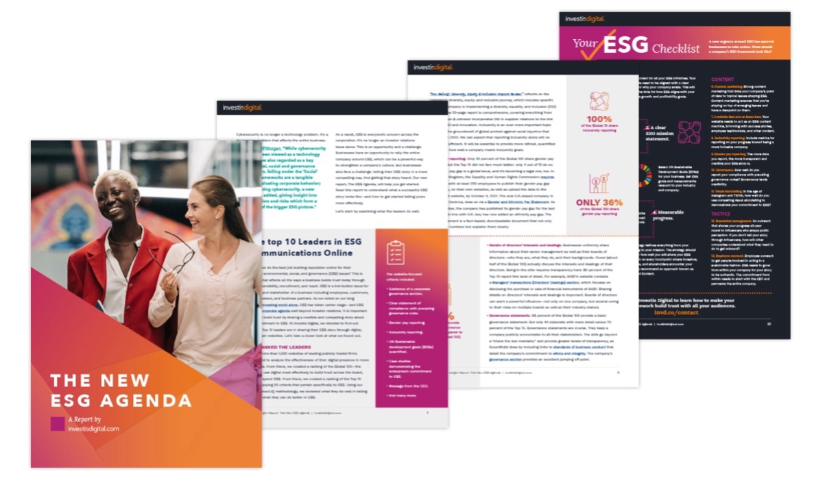 "Everyone is trying to understand how to incorporate ESG principles into their digital presence,” said Luke Bishop, VP of Strategic Growth, Investis Digital. “How well you tell your story online is critical to building trust with your audiences and drive your long-term growth strategy. This report highlights how you can build a foundation by telling a credible story on your own website and key steps on how you can enhance your own ESG practices."