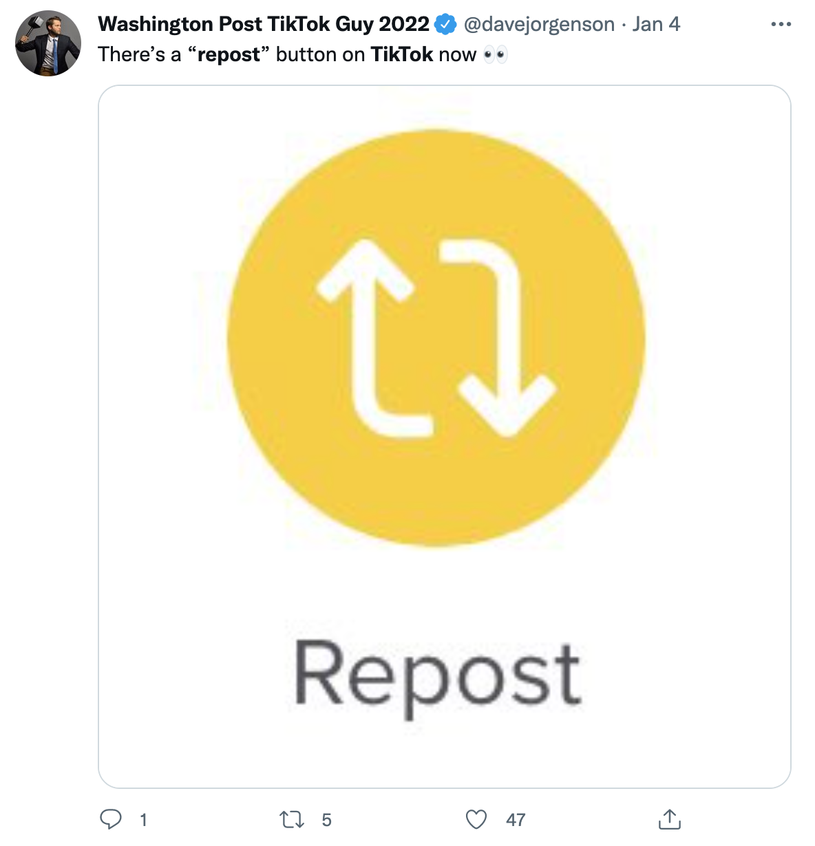 The most visited site of 2021, TikTok, is testing out a new repost feature which allows viewers to share and amplify content from other creators with their own followers. The repost button appears in sharing options but is only available to a select number of users on the app—for now.