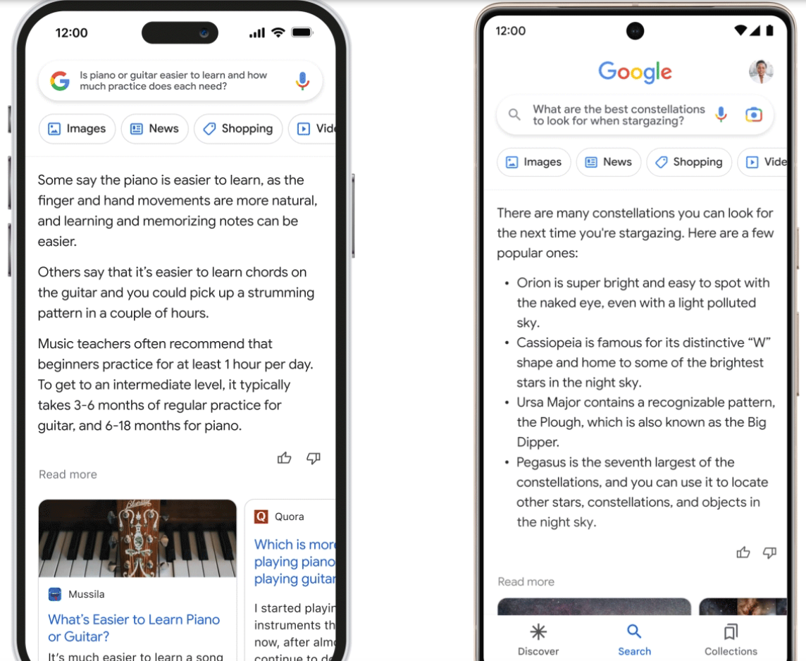 As both Google and Microsoft integrate chatbots like Bard and Chat GPT with their respective engines, we were given a glimpse of how AI-generated results could potentially show in the top placements on the Google results page in a February announcement article (see screenshot below).