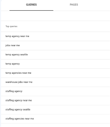 From here, you can click over to the queries tab and filter out the client’s brand name. This allows you to see what unbranded queries have been driving clicks to the website.
