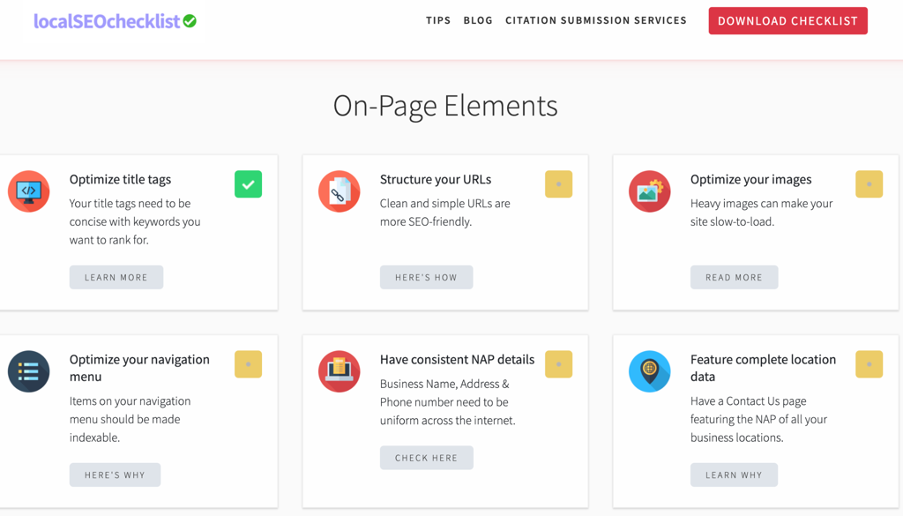 Another way to ensure you aren't missing out on any local optimization opportunities is to run through a local SEO checklist.