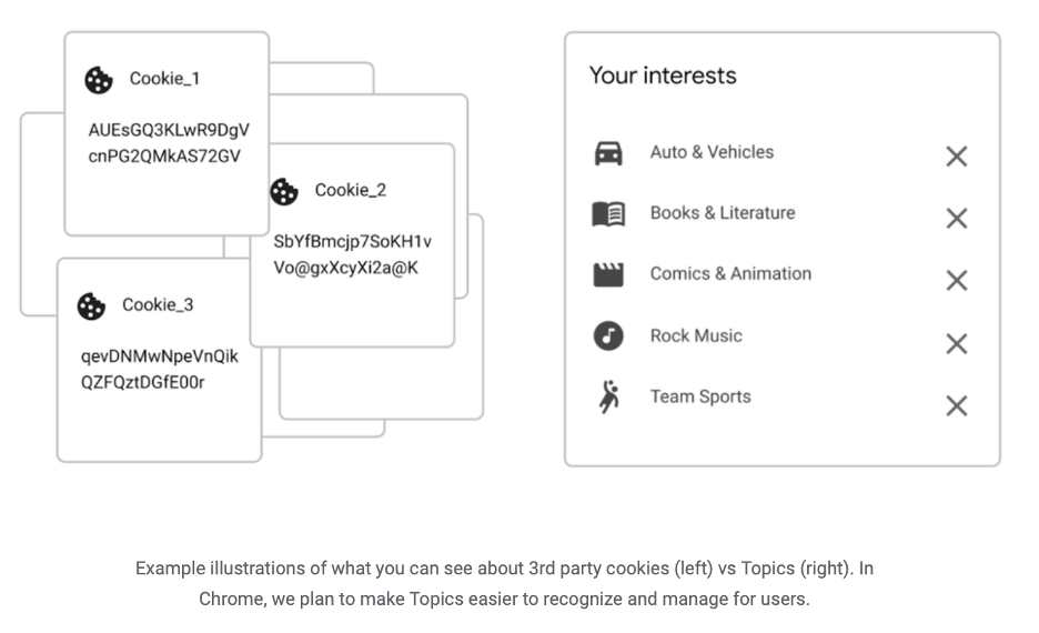 Here’s how Google illustrates the difference between Topics and third-party cookies: