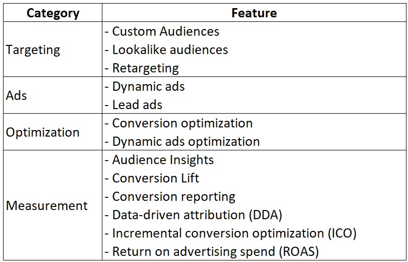 Advanced Matching may improve your performance if you use any of the following advertising features: