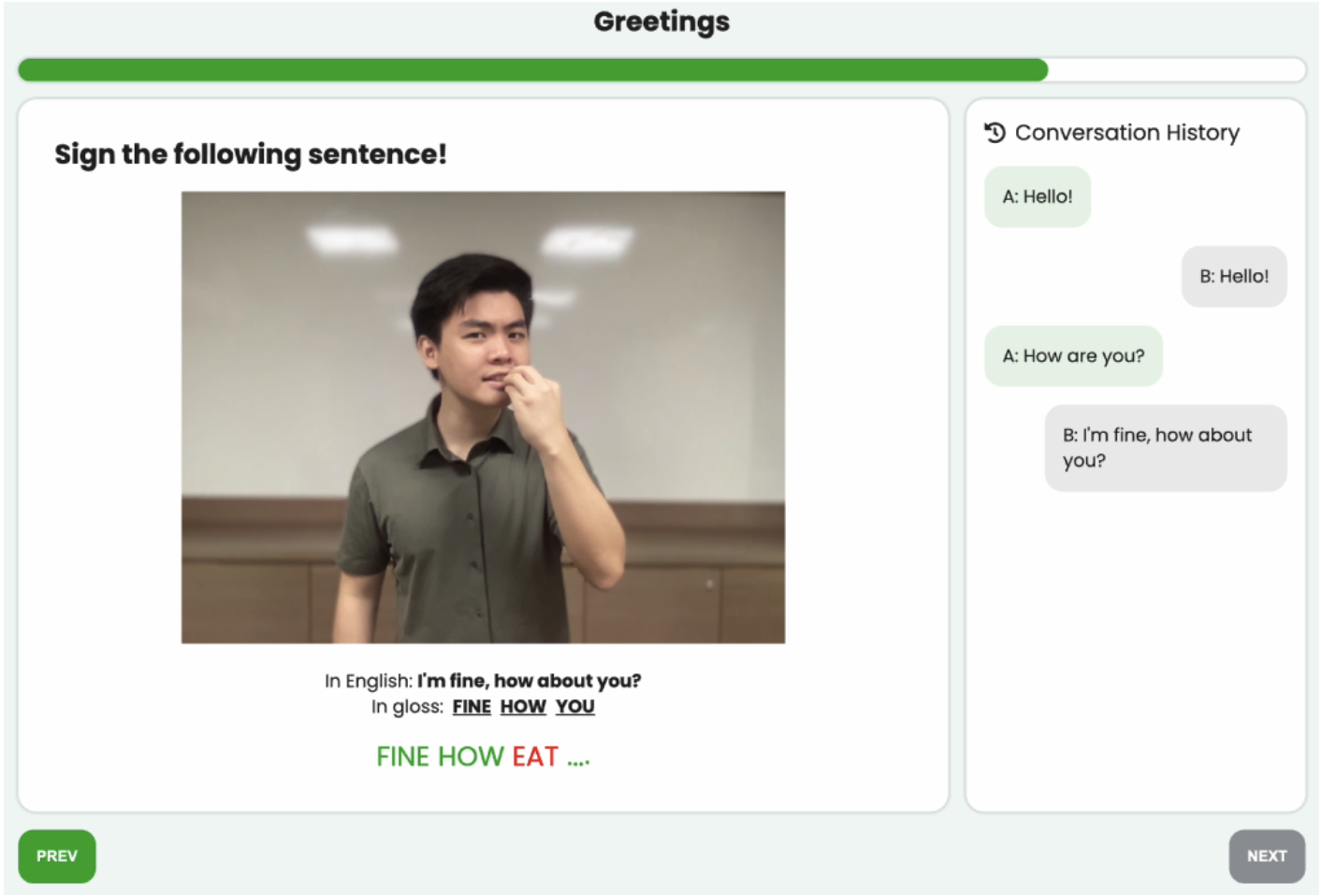 The three-person team went about designing Sign2Sign to bridge that gap. How? By using a 3D avatar to demonstrate signs to help people learn signing vocabulary and, crucially, practice it in conversation. The app provides real-time feedback to users in order to improve their two-way signing by watching themselves practice.