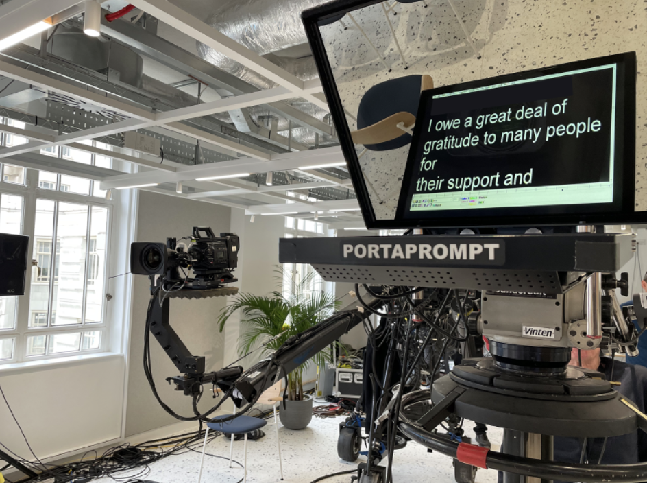 Whether you are looking for a small setup as an addition to your presentation, to using our studio, to a production at an exhibition hall. We guide you through the whole process and supply cameras, microphones, lighting rigs, jibs, staging, and furniture, as well as teleprompters and live interpretation.
