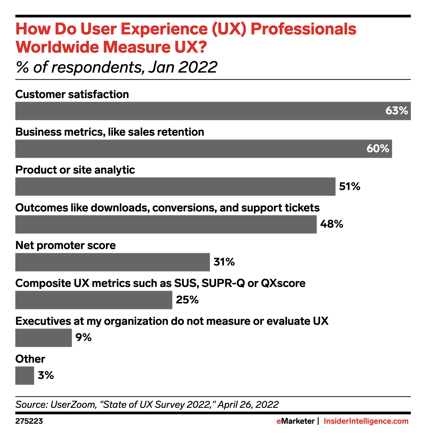 According to the UserZoom “State of UX Survey 2022,” 63 percent of UX professionals mark customer satisfaction as the most important indicator of good user experience design. Great design starts with listening to your users’ concerns—whether that’s through reviews, ratings, or customer service feedback—and adjusting accordingly.